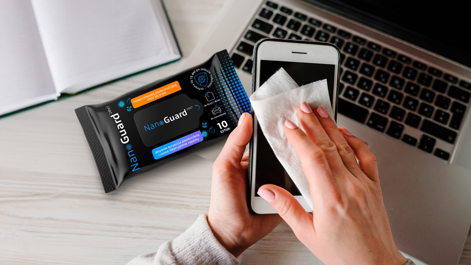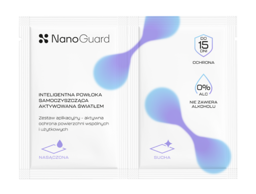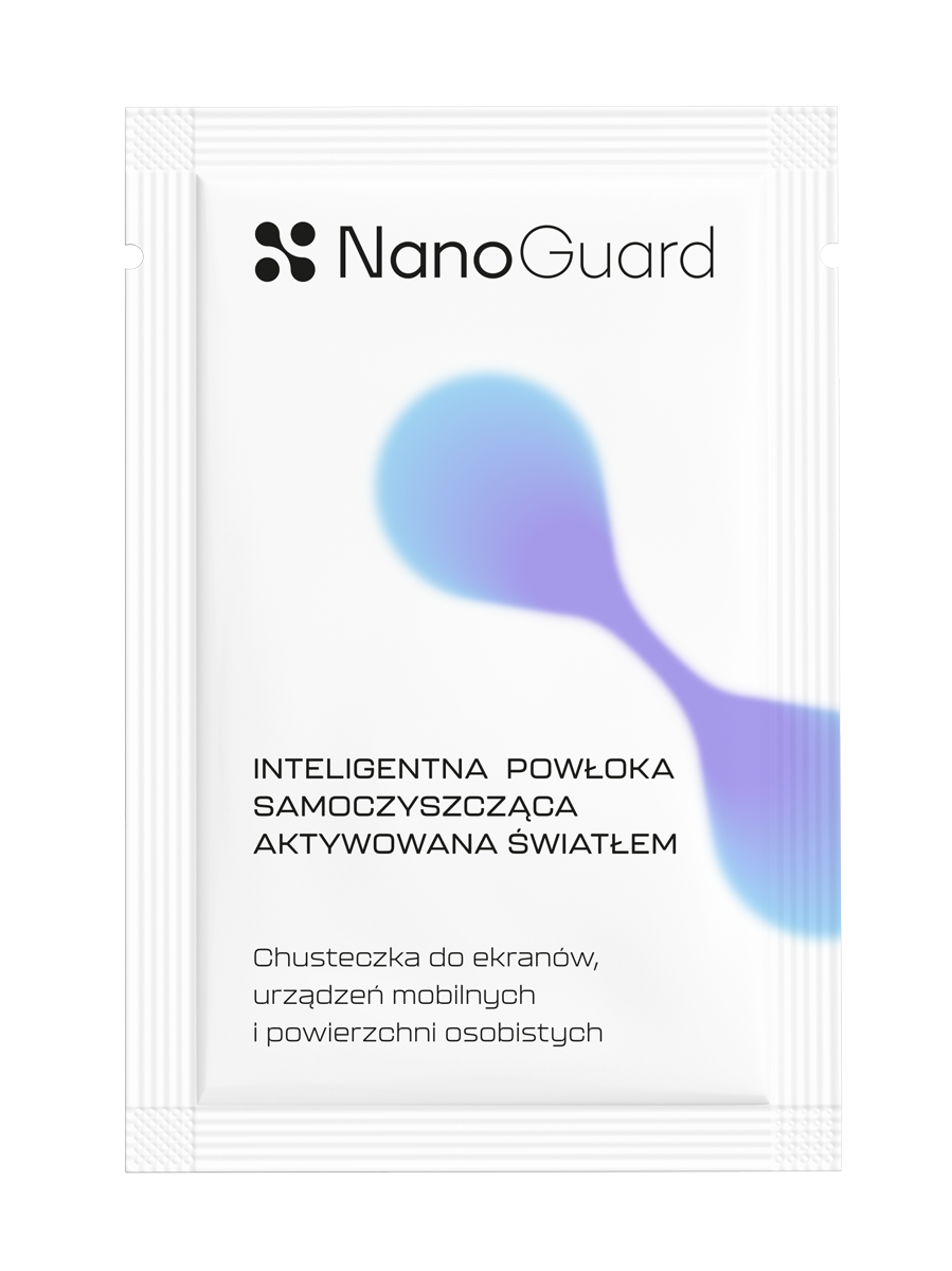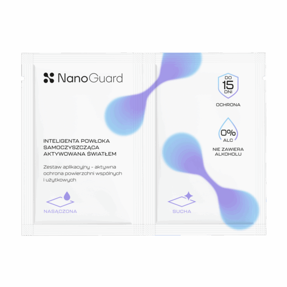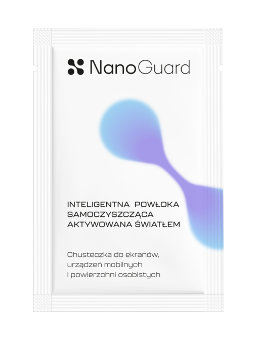 NanoGuard to powłoka ochronna w formie nasączonych chusteczek, która aktywuje się pod wpływem światła (naturalnego lub sztucznego). Po jednokrotnej aplikacji działa nawet do 15 dni, wspomagając higienę powierzchni gładkich i niechłonnych m.in.: metal, szkło, ekrany smartfonów, glazura, marmur czy meble wykonane z płyt laminowanych.